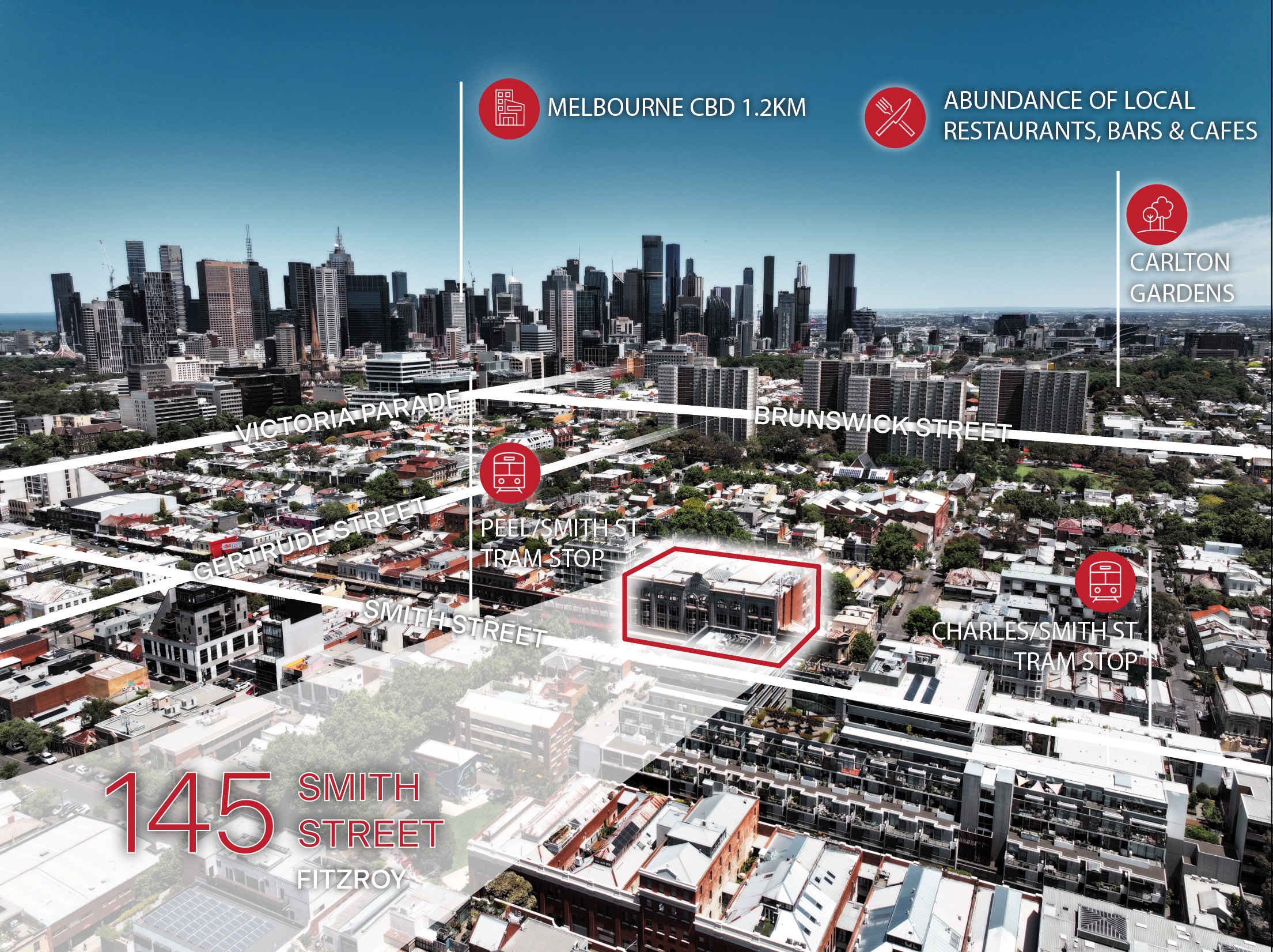 Located on the west side of Smith Street in the heart of cosmopolitan Fitzroy with tram at the door. Victoria Parade within easy walking distance.